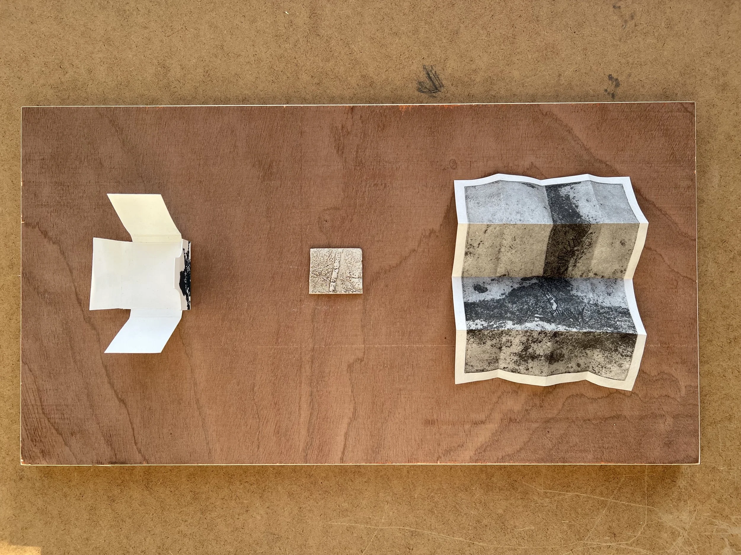 screen-printed phase box (3x4cm closed), clay fragment (2.5x3.5cm) , photo transfer intaglio print on Awagami hosho paper (11x15cm)